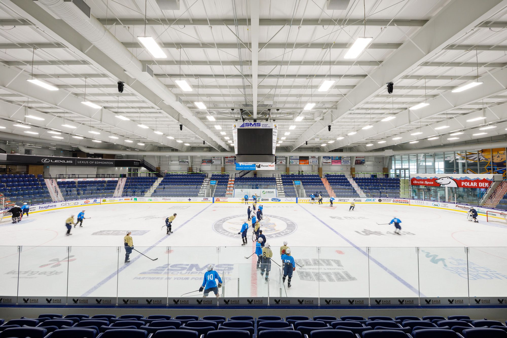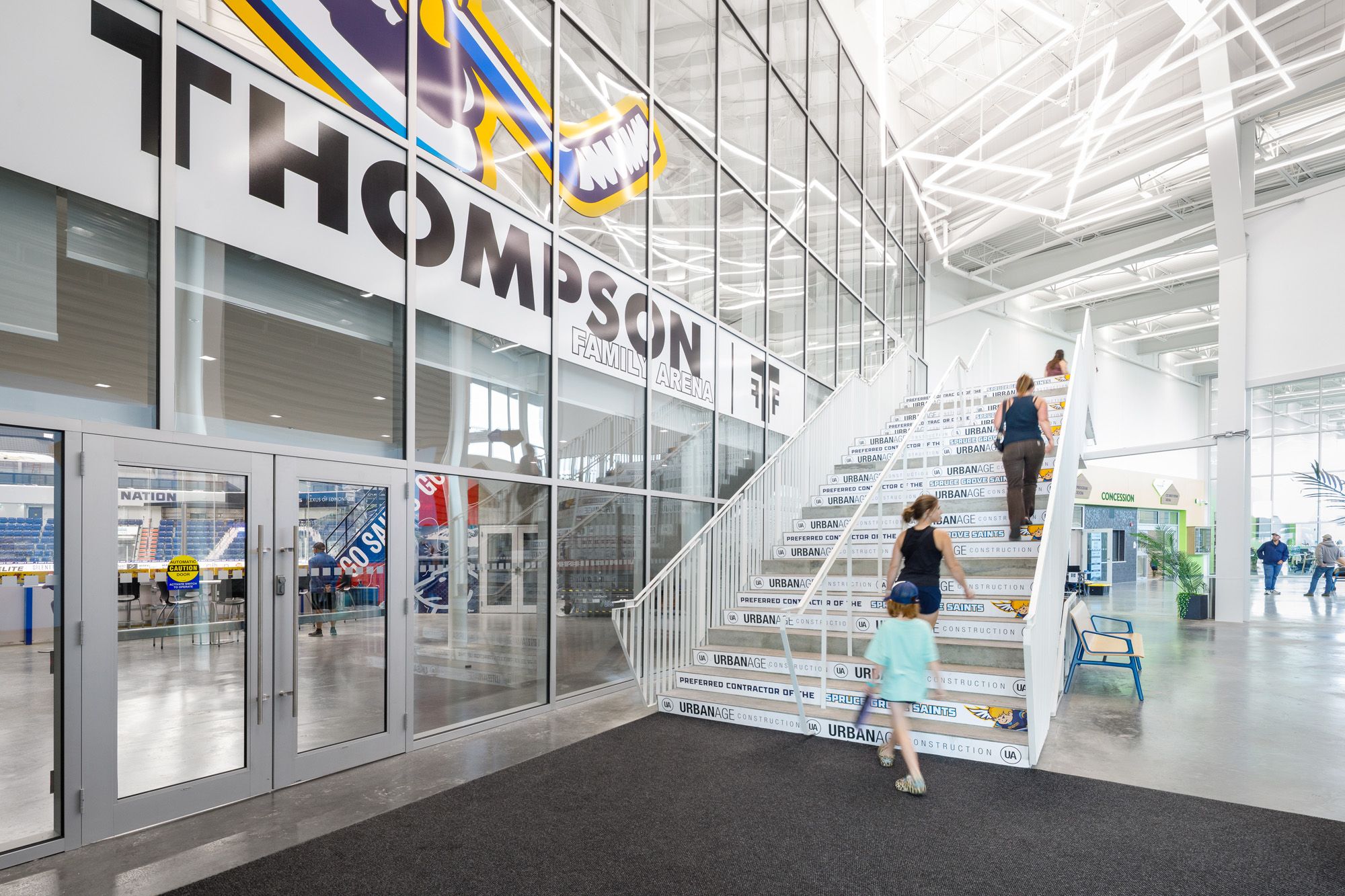 At its core is the Thompson Family Arena—a 1,400-seat venue and future home of the Junior “A” Spruce Grove Saints of the British Columbia Hockey League (BCHL). Complete with a full seating bowl, private boxes, a party lounge, and mezzanine views, the arena is ready to host everything from playoff games to concerts, trade shows, and citywide celebrations. A second, 250-seat community arena offers flexible ice time for youth sports, practice, and everyday play.