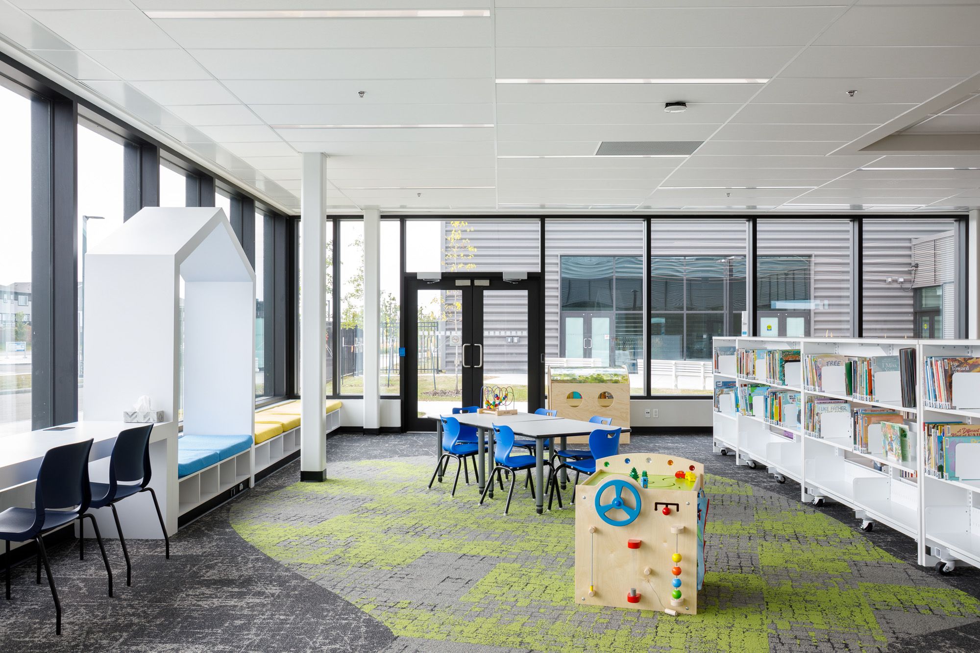 But Heavy Metal Place extends well beyond the ice. A full-service branch of the Spruce Grove Public Library, a black box theatre, the LJL Galleries Community Art Gallery, an indoor running track, universal dressing rooms, and a pro shop all share a central lobby that encourages connection across programs. Just steps away, the new Spruce Grove Transit Centre links the building to the broader region, making it a true hub for both activity and access.