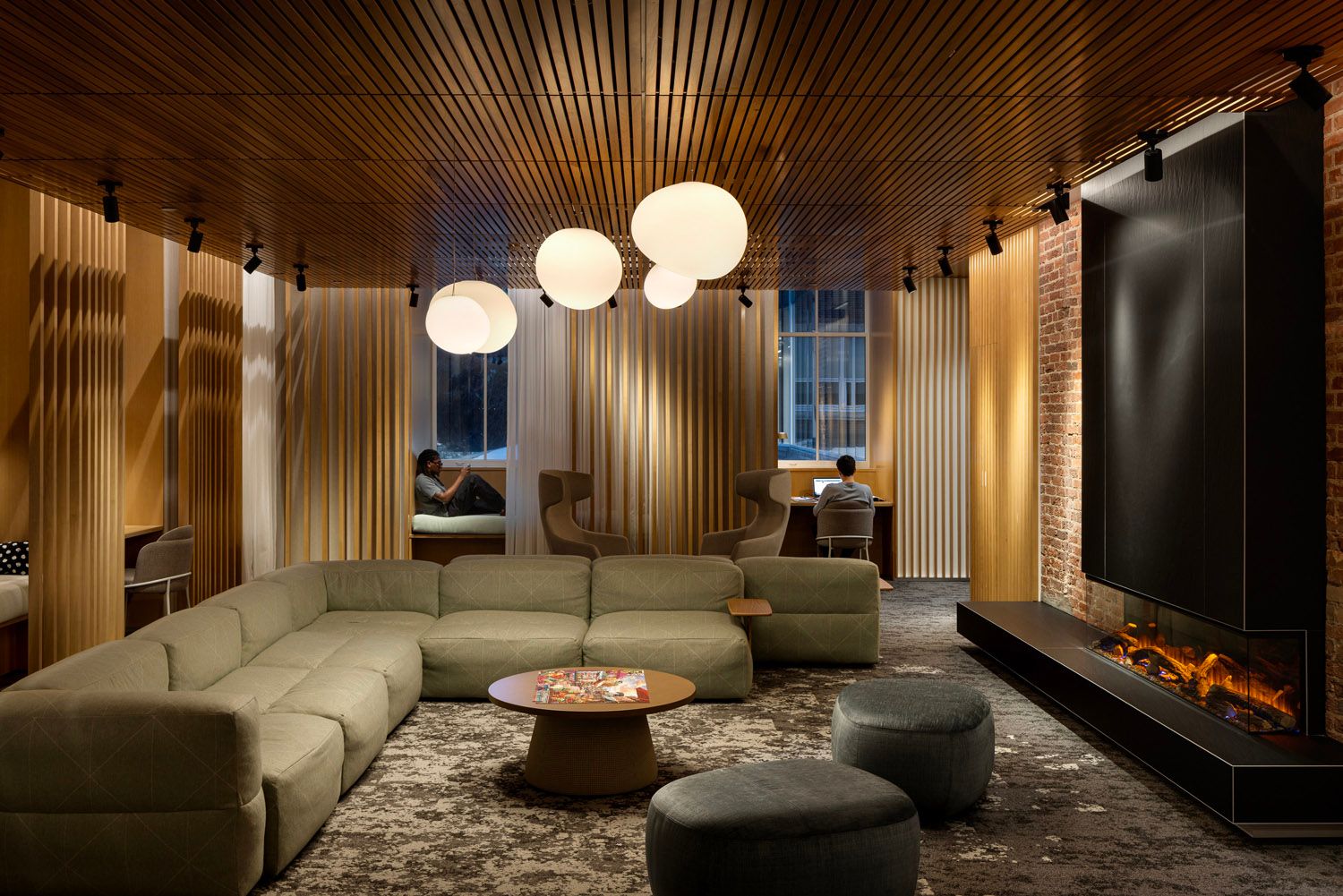 At the core, old and new converge in a light-filled atrium. Framed by balconies and surrounded by gathering spaces, it acts as both a social heart and a circulation spine—bringing daylight deep into the building and offering spaces that feel open, fluid, and welcoming. Multiple new, barrier-free entrances draw people in from every direction. An east-facing scalloped porch meets the rhythm of daily transit, while a timber-framed walkway to the north turns a former back lane into a place of arrival.