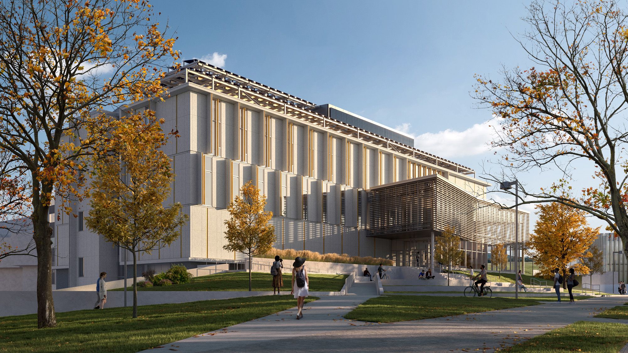 The design reorients the Civil Wing toward the street, replacing an inward-facing façade with a visible, welcoming entrance. A two-storey addition and terraced landscape make the building easier to find and navigate, while offering new places to sit, gather, and enjoy the outdoors. These changes turn a once-isolated building into an active part of daily campus life.
