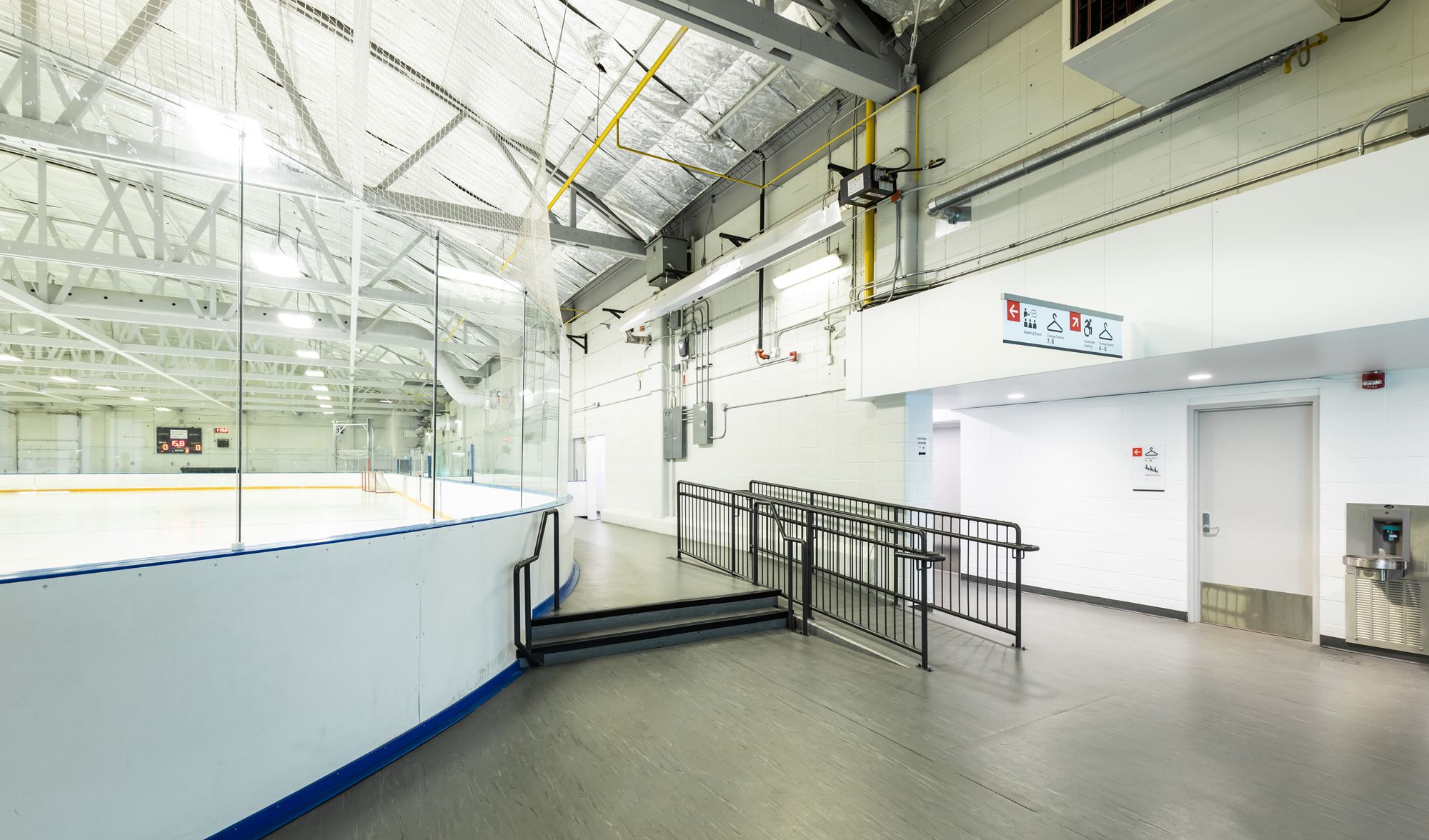 GEC approached the project with a focus on clarity, collaboration, and respect for the existing buildings. The Jimmie Condon rink was expanded to NHL size with a new refrigerated slab, improved dasher boards, and additional spectator seating. Within the original footprint, we reconfigured the change rooms to provide universal access and contemporary amenities for both hockey and figure skating programs. An exterior expansion created a brighter, more welcoming lobby with better circulation and clearer wayfinding, while newly added meeting rooms—introduced late in design—quickly became a valuable community resource.<o:p></o:p>